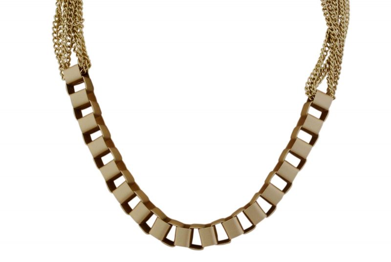 This necklace is made of a cascade of fine 18K gold-plated chains delicately attached to a cubic one-of-a-kind statement chain. Wear this beautiful necklace day or night with black or white backdrops.