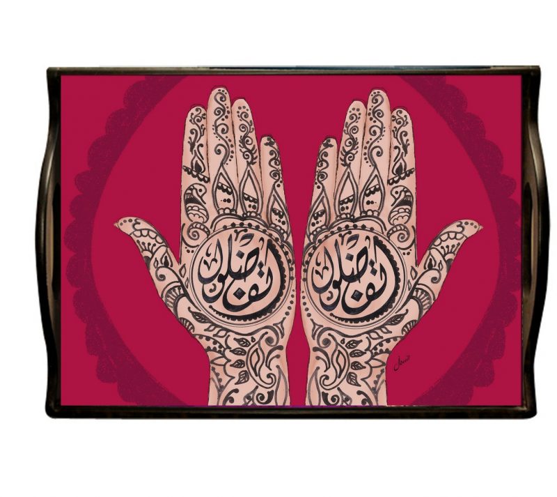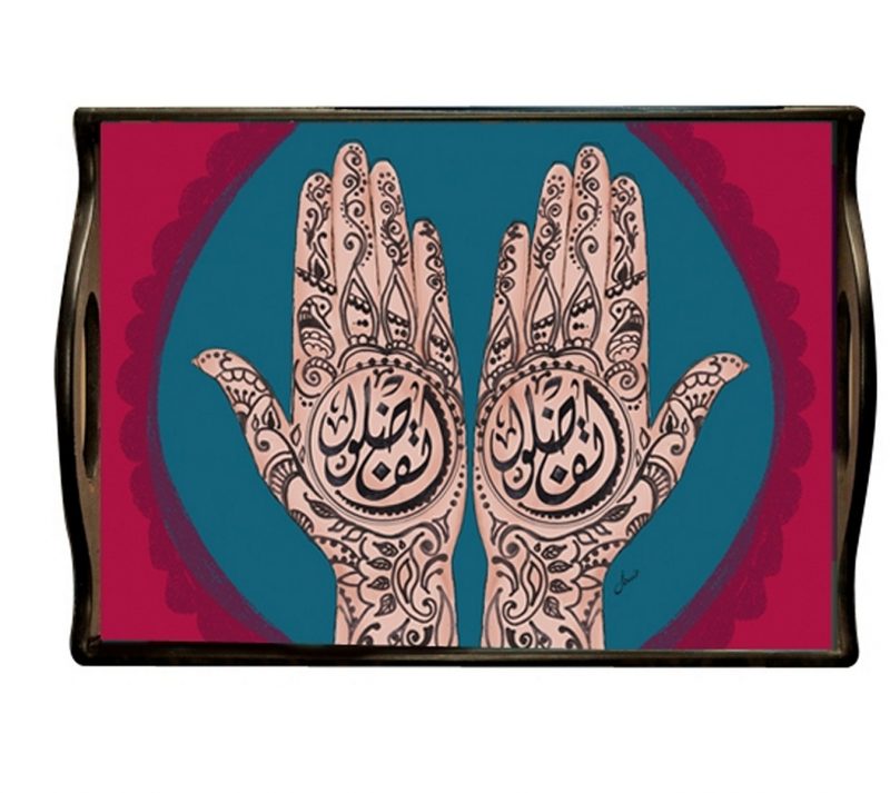 Nothing welcomes your guests better than a tray with itfadalo (help yourself) painted on it. With a simple colour palette, you can play around with your tableware.
