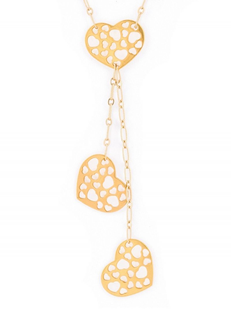 This simple gold necklace will be a classic staple. That you can wear day or night Featuring 3 gold plated hearts with a gold chain, this necklace is also perfect for layering under other necklaces. Pair it with plain tops to make it really stand out.