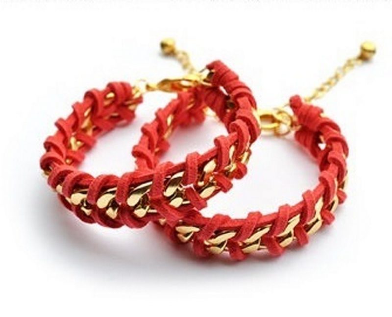 Red Braided Golden Chain Bracelet