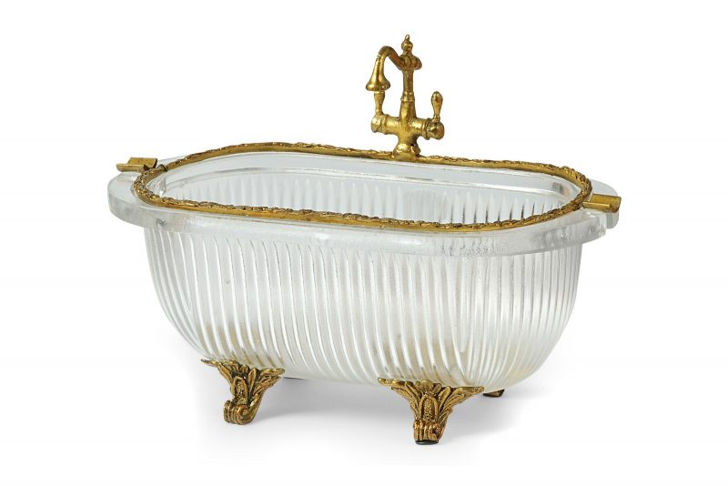 This crystal ashtray with bronze detailing will defiantly be a conversation starter at your gatherings. Shaped as a bath tub, this fun ornament can be placed on your living room"s side tables.