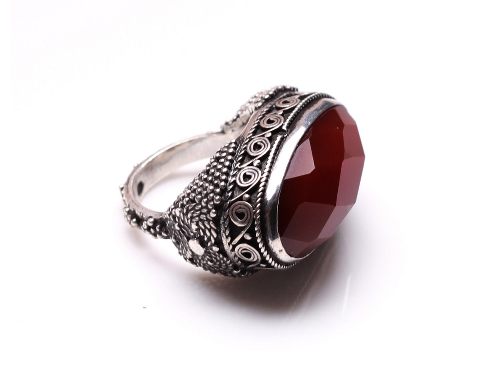 Looking for a new statement ring? End your search with this pick from Mahy”s collection. Inspired by traditional Yemini designs, this ring will give any look an instant opulent feel. Made from Silver 925 and a dark brown striking stone, make this your signature accessory. Wear it with silver accessories to complement your new ring.