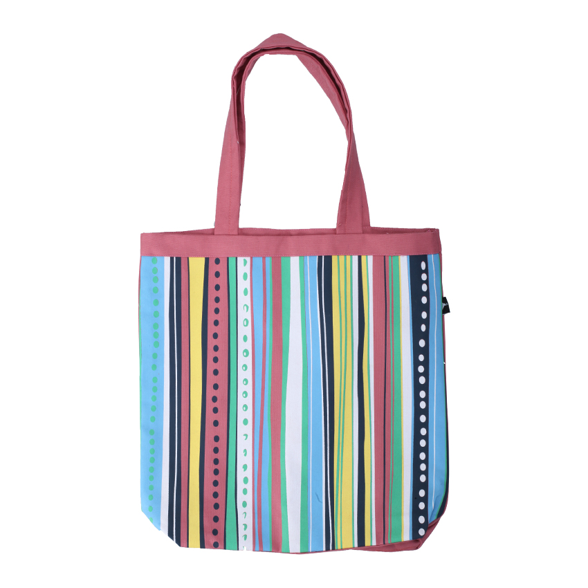 This hip tote is perfect for any summer appearance. Because it’s multi-coloured, this bag can be worn with blue, mint, yellow, pink, or dark blue tops and white jeans.