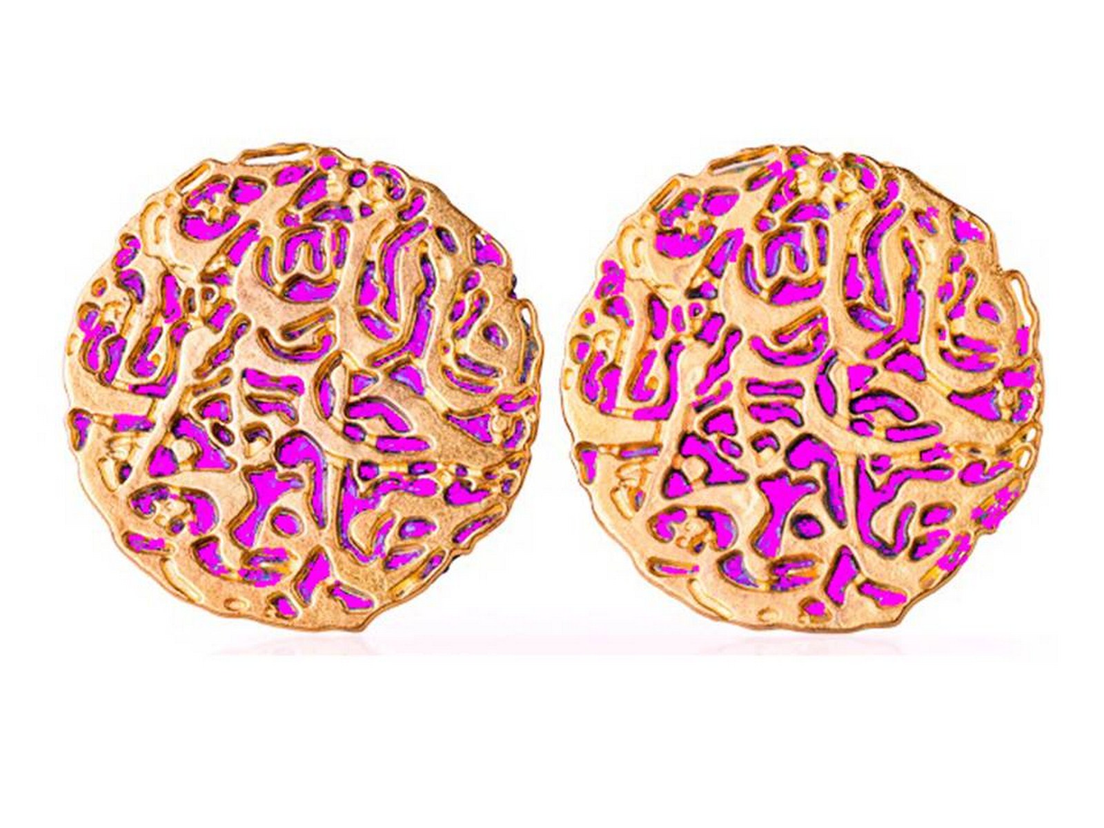Copper earring plated gold with neon pink color with Slogan ” ‰غ¢پس_‰غ¢پس_‰غ¢پس_‰غ¢پس_ ‰غ¢پس_‰غ¢پس_‰غ¢پس_ ‰غ¢پس_‰غ¢پس_‰غ¢پس_‰غ¢پس_ ” Plated gold 18 carat.