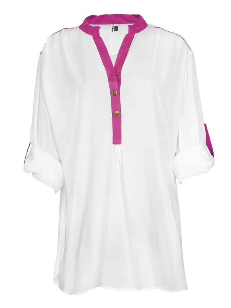 Over sized shirts are great for days when you want to feel comfortable and free. And FAB”s extremely soft viscose white shirt offers you style as well as comfort. With flat gold buttons and perfect silk lining, this top will add flair to your lazy days. Wear yours with skinny trousers for a perfect balance.
