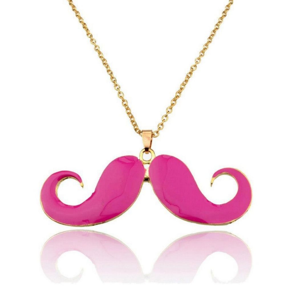 Pink Double Curl Moustache Necklace